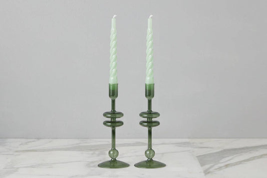 Glass Candlestick Pair, Small, Emerald