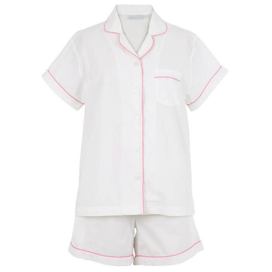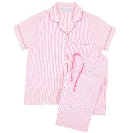 Pink Seersucker-Pink Short Sleeve Long Pant Pajamas