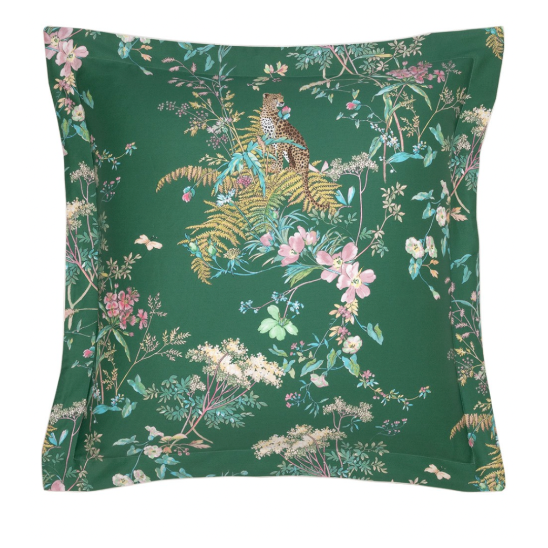 Between ethereal fauna and wild flora, the Contes bed linen set unveils a dreamlike, colorful design printed on luminous sateen, enveloping the bedroom in enchanting charm.