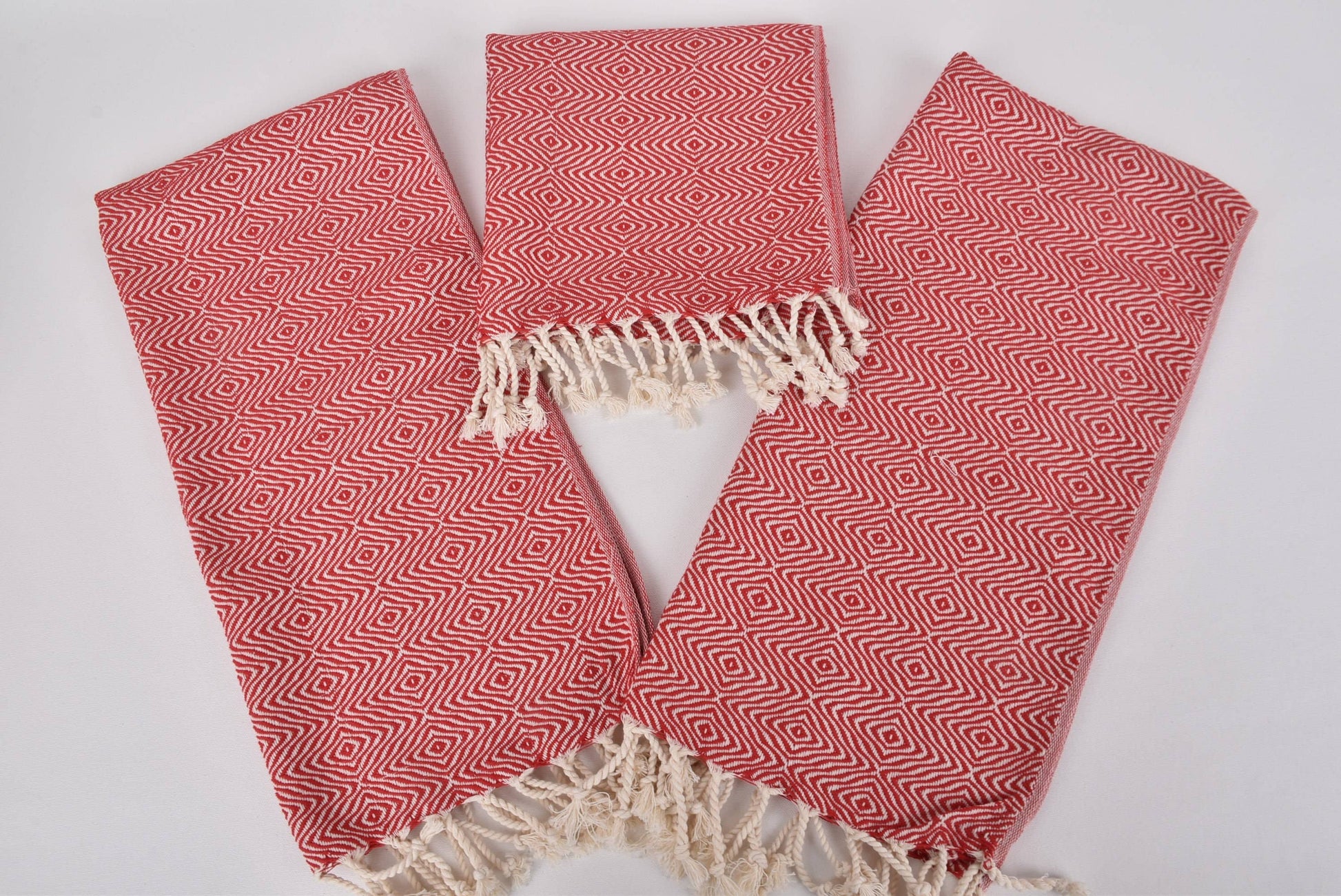 Elevate your kitchen with our Custom Dish Towel, a Cotton Woven Tea Towel that combines style and functionality. Perfect for personalized gifts, this 18x36 inches Red Towel is versatile for gym, camping, and home use. Its unique diamond pattern adds a touch of elegance while ensuring durability and absorbency.