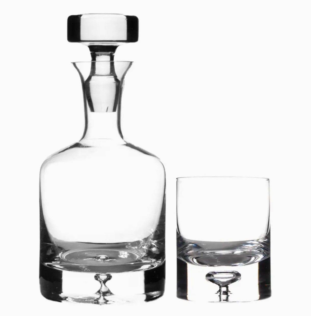 The rocks glasses are formed with glass blowing technique to create a stunning hollow detail. This glass hold 9 oz of your liquor. Each decanter comes with two glasses. This is the perfect gift for your favorite gentleman and great as a host or hostess gift.