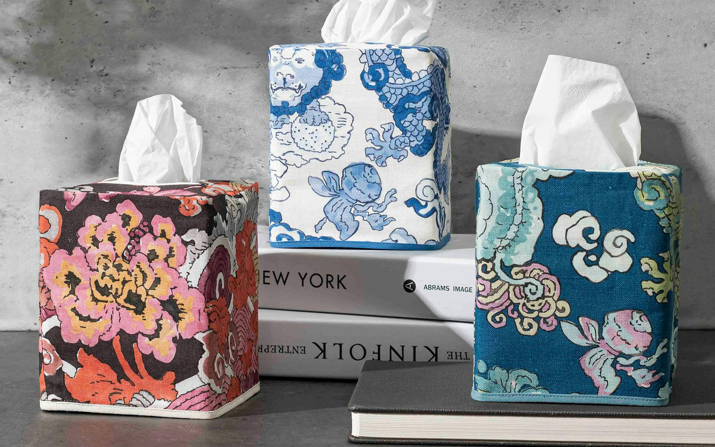 Magic Mountain Tissue Box Cover Porcelain Blue