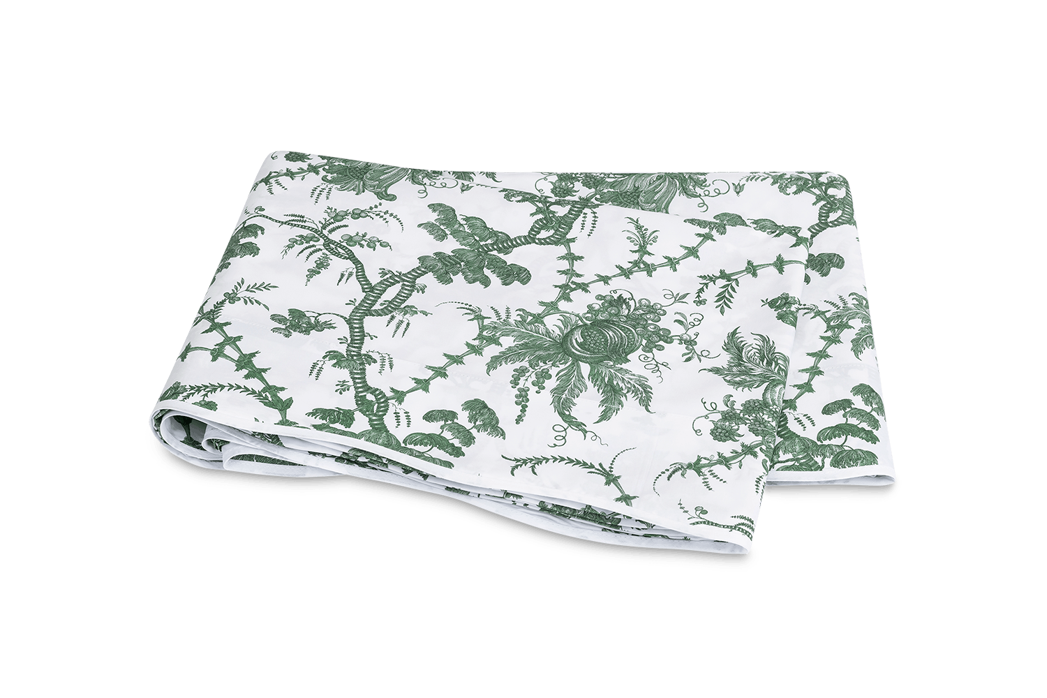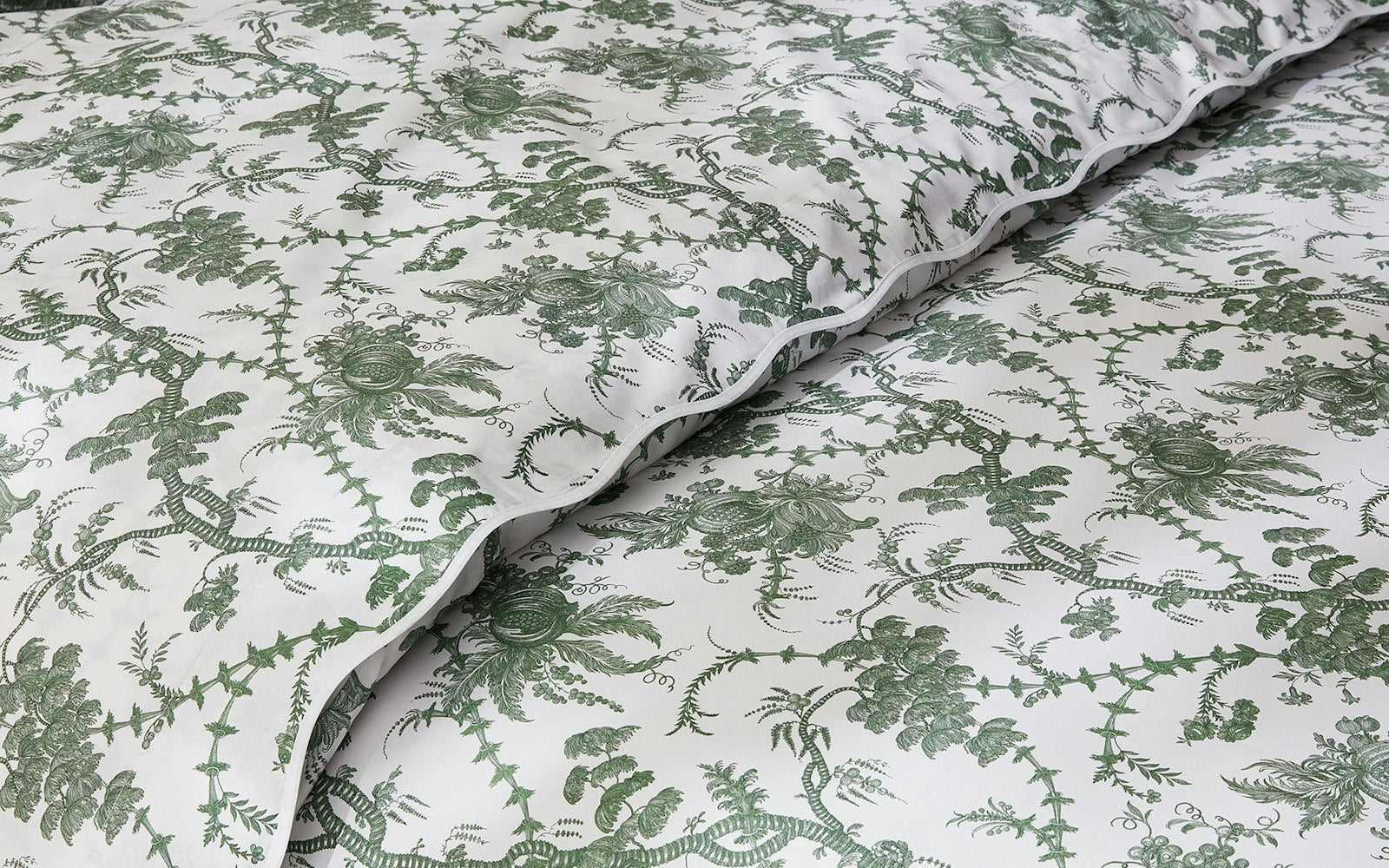Here to bring some toile de jouy to your bed, Schumacher's San Cristobal will guarantee the sweetest of dreams. Though a faithful reproduction of an 18th-century document, this pattern has remarkably modern sensibility. We’ve paired it with our lightweight, super-luxe 500 thread count Luca Egyptian cotton percale and finished it with a subtle scalloped taped edge.