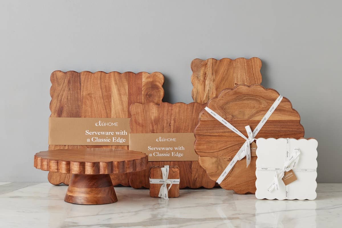 Discover the perfect blend of modern style and whimsical charm with our Rectangle Scalloped Cutting Board. The unique scalloped edges add movement and subtle femininity while the natural wood grain adds texture to your countertop. With its trendy design, this functional piece of art will become a staple in any kitchen. Inspired by the classic architecture of 18th Century Europe, the Scalloped Collection captures this old-world charm while blending seamlessly into contemporary aesthetics.